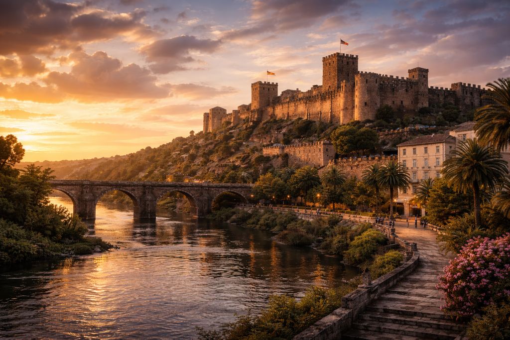Крепость не просто возвышается над городом — она буквально формирует его силуэт. Со смотровых точек открывается вид на реку и равнины Эстремадуры.
