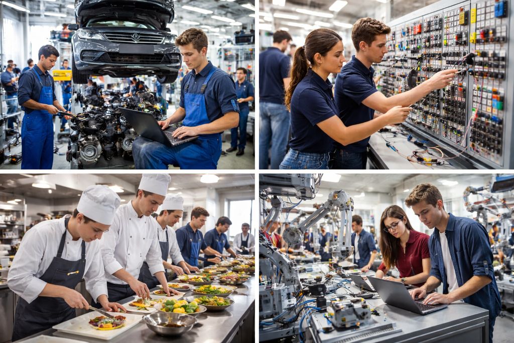 Испанская система профессионального образования охватывает широкий спектр специальностей. Существуют десятки профессиональных направлений — от информационных технологий и робототехники до гастрономии, здравоохранения, автомобильной промышленности и гостиничного бизнеса. Программы регулярно обновляются, чтобы соответствовать технологическим изменениям и потребностям экономики.