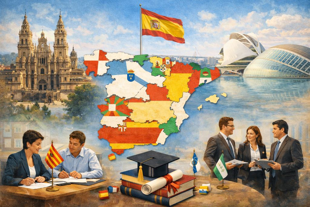 Одной из ключевых особенностей испанской образовательной системы является её децентрализованный характер. Формально Испания сохраняет единое образовательное пространство: государство устанавливает основные законы, общую структуру ступеней обучения, минимальные требования к содержанию программ и официальный статус дипломов. Однако практическое управление в значительной степени передано автономным сообществам. Именно они превратились в главный уровень повседневной организации школьного образования, что делает испанскую модель одной из самых регионализированных в Европе.