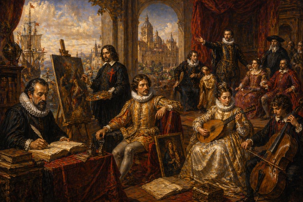 Культурный расцвет был тесно связан с положением страны в мире. Огромная империя, ресурсы из Америки и активные международные контакты способствовали развитию искусства и науки. Однако одновременно происходило постепенное ослабление экономической системы, что создавало напряжение внутри страны. Это противоречие отразилось в культуре, которая нередко обращалась к темам упадка, иллюзии и человеческой уязвимости.